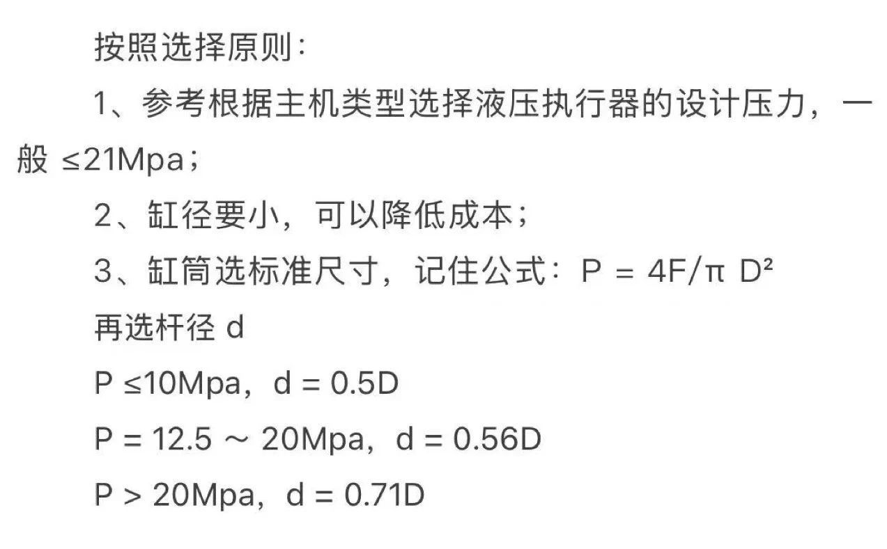 2、初選缸徑D/桿徑d