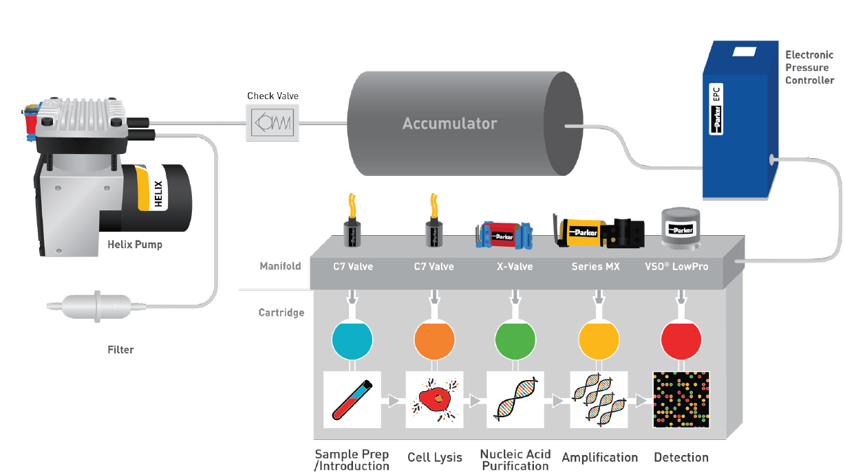 派克旗下的隔膜泵和搖擺式活塞泵可為 POCT 設(shè)備提供所需的氣體壓力,通過(guò)壓力驅(qū)動(dòng)液體流量確??煽啃院鸵恢碌牧黧w控制,大幅減少設(shè)備意外停機(jī)時(shí)間,降低客戶整體成本和運(yùn)營(yíng)成本。