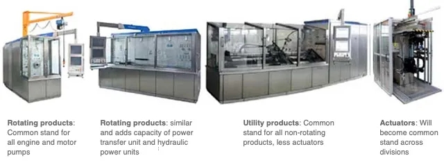 HSD引入了通用測試臺架,并對新臺架做出戰(zhàn)略性部署 – 經(jīng)規(guī)劃,單個(gè)通用臺架擁有多種測試能力,取代并減少原有單一用途臺架的數(shù)量。發(fā)展到現(xiàn)在,通用臺架能支持不同零件的測試工作。此項(xiàng)改變將HSD總部工廠的臺架數(shù)量從83個(gè)減少到不到40個(gè),測試臺配置也從70多種降低到只有16種,大幅度提升運(yùn)作效率。此外,機(jī)器數(shù)量的減少和生產(chǎn)效率的提高也能幫助降低能耗及使用成本。